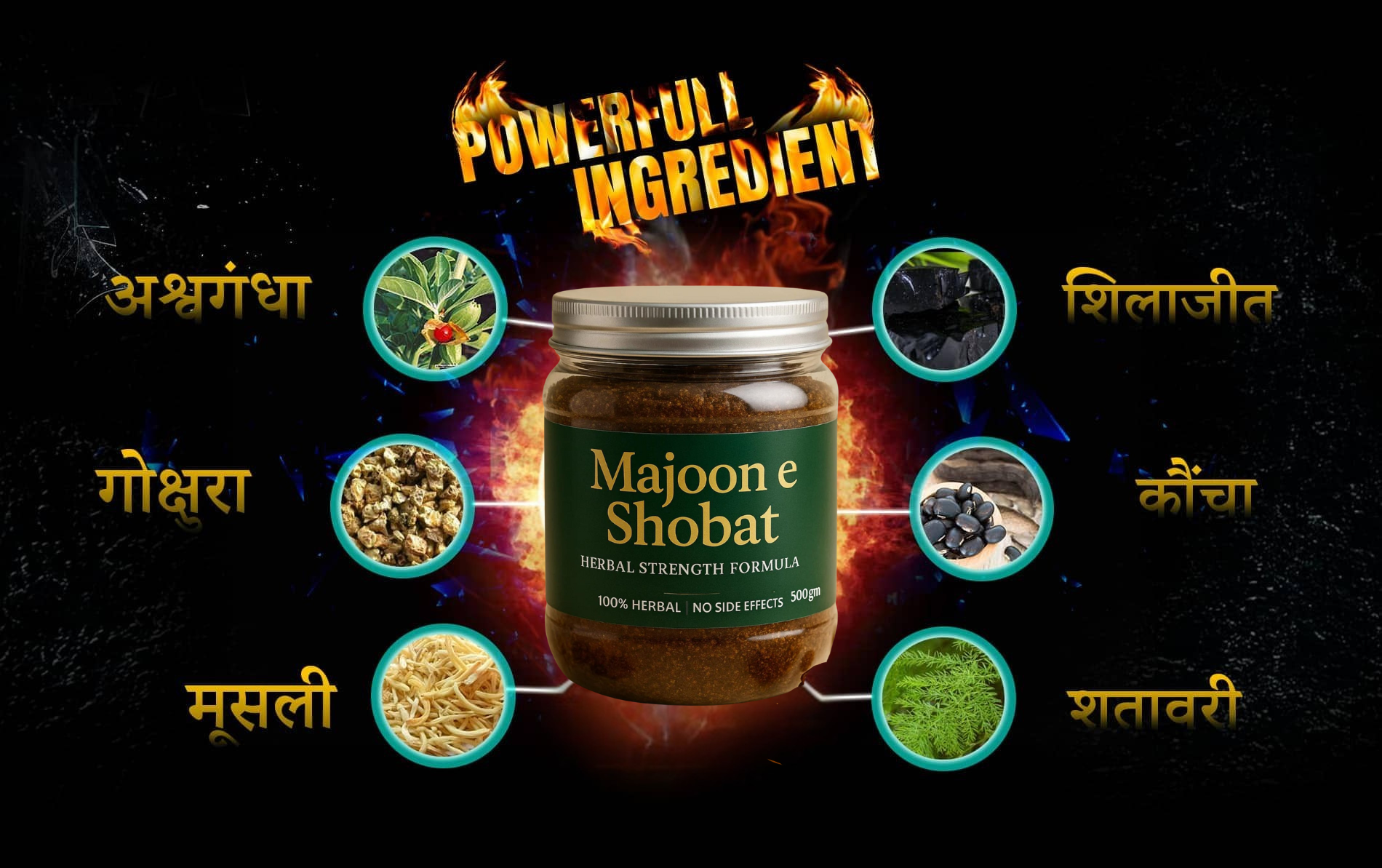Majoon E-Shobat एक श्रेष्ठ आयुर्वेदिक वाइटलाइज़र और ऊर्जावर्धक है। शिलाजीत, अश्वगंधा, कौंचा और गोक्षुरा जैसी 16+ पॉवरफुल आयुर्वेदिक जड़ी-बूटियों से बना यह शानदार उत्पाद पुरुष यौन स्टैमिना को बढ़ावा देता है, सेक्सुअल इंटरकोर्स टाइमिंग को बढ़ाता है और प्राइवेट पार्ट में मजबूत इरेक्शन देता है। जो एक अतिरोमाँचक यौन क्रिया के लिए सबसे जरुरी है।